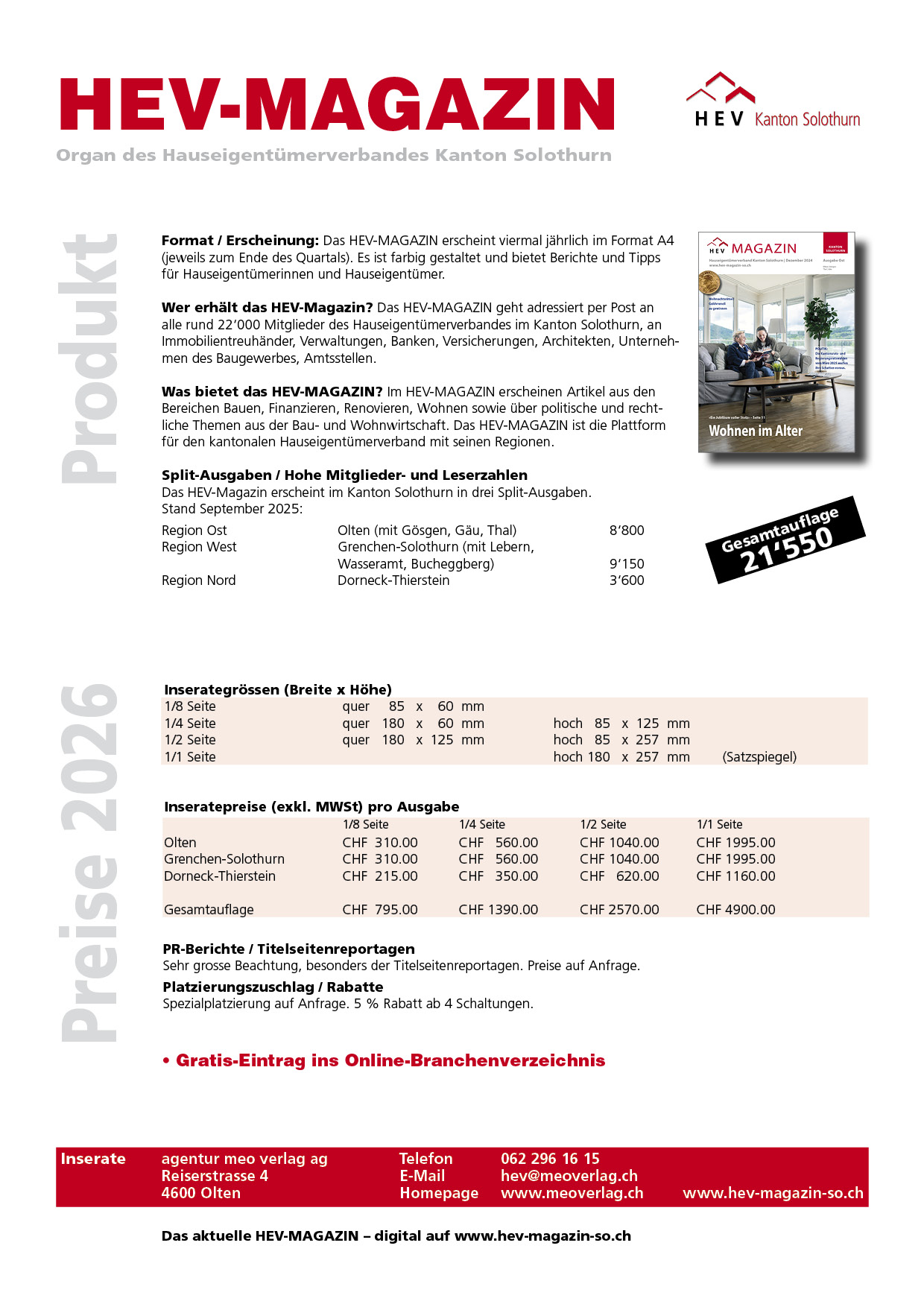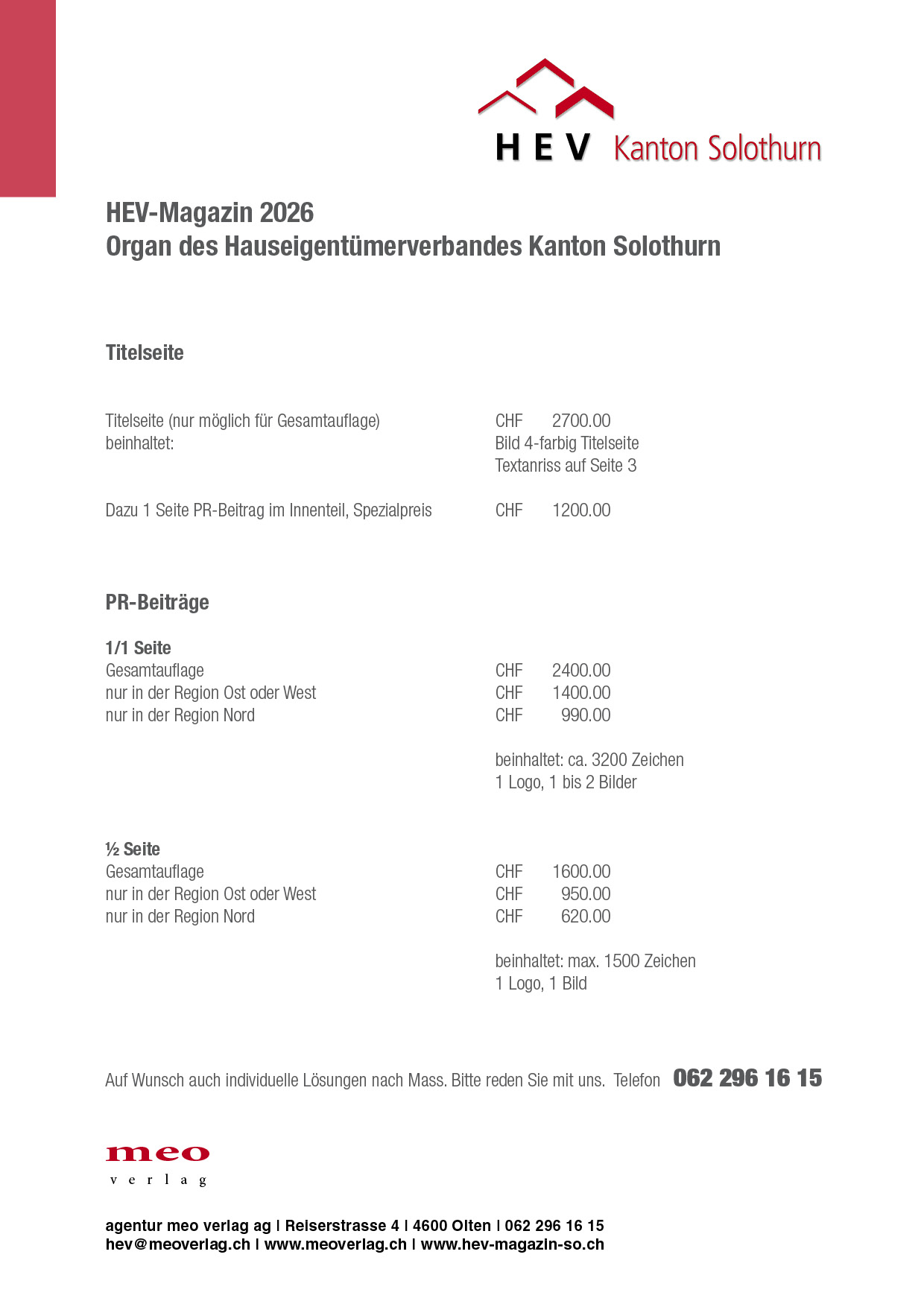 Beachten Sie unsere Homepage fürs HEV-Magazin Kanton Solothurn: